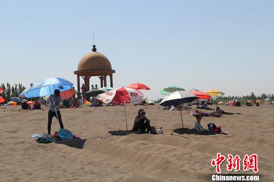 當日,記者在吐魯番市維吾爾醫醫院沙療基地看到,數百名來自疆內外的游客,有的人撐著遮陽傘、下半身埋在沙子里;有的人直接躺在沙丘上,用沙子將自己埋住,只露出臉部和胸口,然后再用毛巾蓋在臉上,享受著烈日的暴曬……