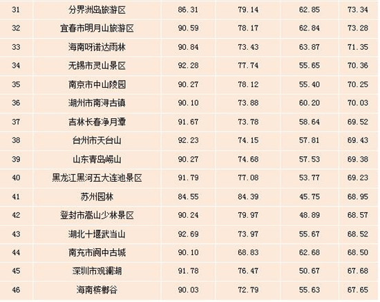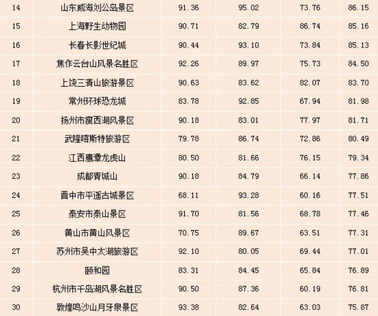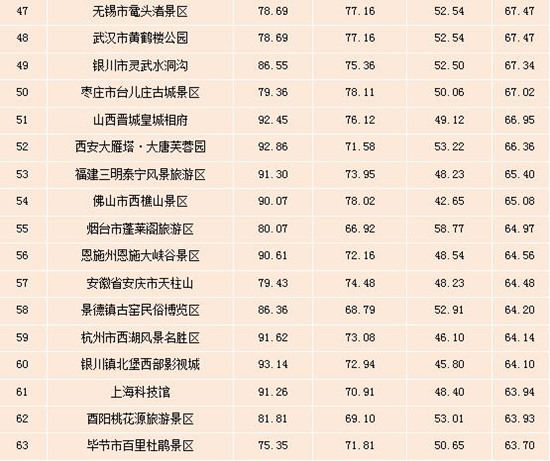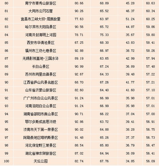 表:全國5A級景區雙微運營效果排行榜(Top100)