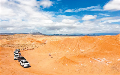 8月8日,記者從中國科學院月球與深空探測總體部獲悉:我國首個火星模擬基地項目將落戶青海省海西蒙古族藏族自治州大柴旦紅崖地區,這里擁有典型的雅丹地貌群,其獨特的地形地貌、自然風光、氣候條件使之成為專家眼中“中國最像火星的地方”。圖為中科院專家在紅崖地區考察。