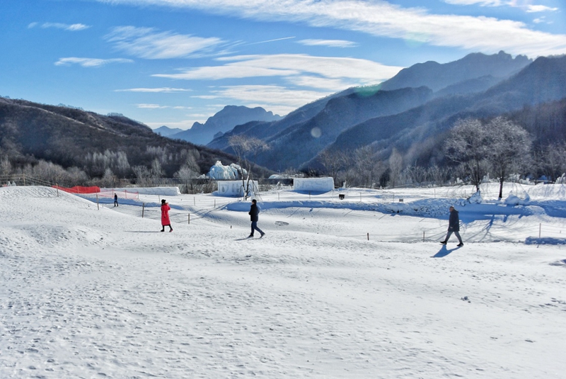 1月14日,玉渡山風(fēng)景區(qū)利用不凍山泉制作的冰雪景觀。 近日,眾多游客來到北京市延慶區(qū)玉渡山冰雪世界體驗(yàn)冰雪游樂活動。延慶區(qū)玉渡山位于燕山山脈海坨山腳下,玉渡山風(fēng)景區(qū)利用氣溫低、高山降雪和不凍山泉等自然優(yōu)勢打造了人工冰瀑、冰川等冰雪景觀,以及高山滑冰滑雪、雪地爬犁、雪圈等冰雪游客項(xiàng)目,每天吸引各地游客超過1000人次。 新華社記者 李欣 攝 -