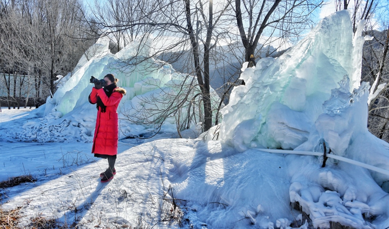 1月14日,游客在玉渡山拍攝山泉冰瀑。 近日,眾多游客來到北京市延慶區(qū)玉渡山冰雪世界體驗(yàn)冰雪游樂活動。延慶區(qū)玉渡山位于燕山山脈海坨山腳下,玉渡山風(fēng)景區(qū)利用氣溫低、高山降雪和不凍山泉等自然優(yōu)勢打造了人工冰瀑、冰川等冰雪景觀,以及高山滑冰滑雪、雪地爬犁、雪圈等冰雪游客項(xiàng)目,每天吸引各地游客超過1000人次。 新華社記者 李欣 攝 -