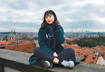 程思凝在巴黎交換期間,走過了許多城市,感受異域文化。圖為程思凝在布拉格的城堡山。