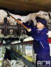2018年1月4日 中國鐵路北京局集團公司北京動車段,職工正在進行動車組列車底部的掃雪除冰作用。(央廣網發 高悅攝)