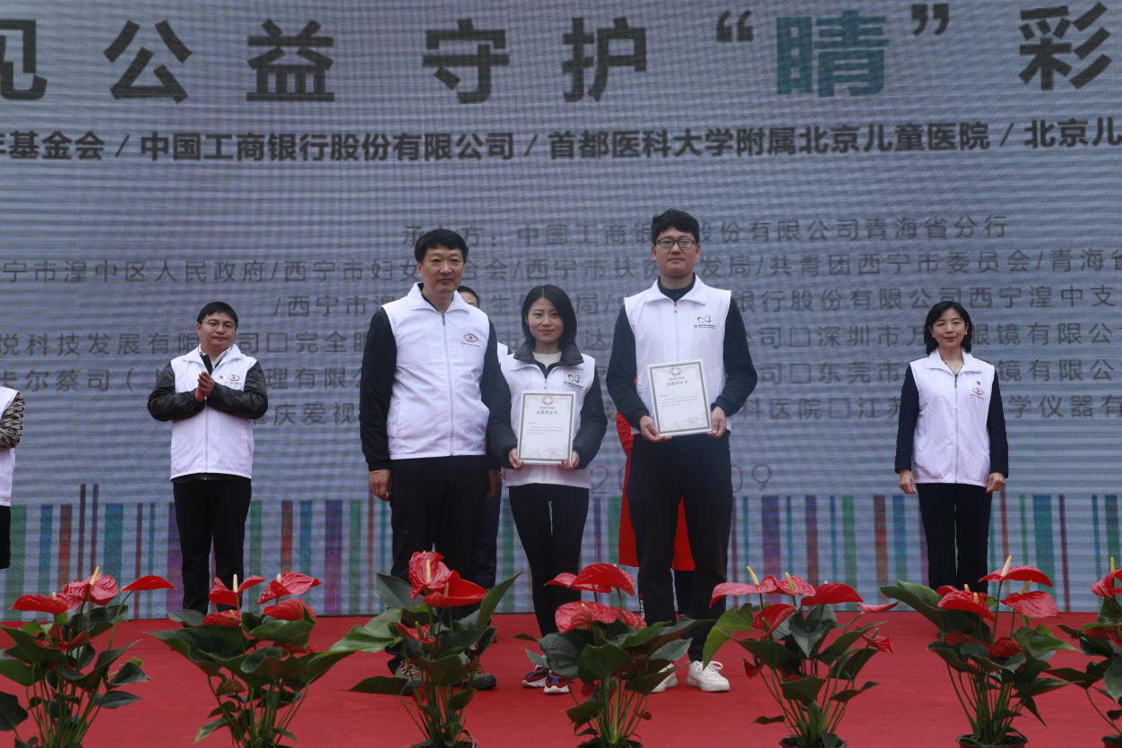 中國工商銀行青年志愿者代表帶領全場宣讀志愿者誓詞:“我宣誓:我志愿成為一名光榮的青年志愿者,積極參與愛目行動第六季。我承諾:踐行志愿精神、奉獻公益愛心、盡已所能、不計報酬、幫助他人、服務社會,為建設團結互助、美好和諧的社會貢獻自己的力量!