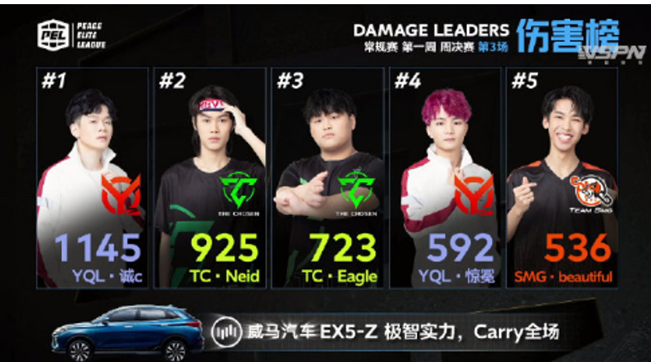 在首周的PEL 2020 S3 常規賽決賽中,YQL卻成功的浪起了一波又一波的高潮!簡直驚呆了觀戰的小伙伴們!憑借著主力選手誠c的強勢操作,YQL順利在前兩局比賽中吃雞,一舉登頂排行榜首位置。而誠c更是連續三局獲得MVP,成為PEL首次完成該成就的選手!