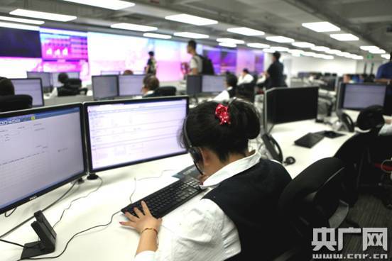 三菱電梯遠程中心控制室里,工作人員實時監測全國電梯的運行情況 央廣網記者高藝寧攝