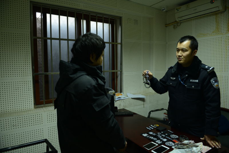 12月25日晚,北京站進(jìn)站口安檢員在對一名身穿黑色制服男子進(jìn)行手檢時,在他的外衣右側(cè)口袋處摸到一副類似手銬形狀的物品,稍后盯安檢儀顯示屏的同事也跑來說他行李中也發(fā)現(xiàn)類似手銬形狀的物品。兩名安檢員立即將該男子帶到安檢臺,請他出示安檢中發(fā)現(xiàn)的類似手銬形狀的物品。該男子從上衣兜內(nèi)和行李中拿各出了一副手銬,很自然的稱自己是“警察”。見安檢中發(fā)現(xiàn)了警用裝備,根據(jù)規(guī)定安檢員趕緊叫來班長小張?zhí)幚怼?jù)小張回憶:我請他出示警官證時,該男子明顯有些猶豫,稍后才從外衣左側(cè)衣兜內(nèi)拿出一個警官證。我打開后一看,發(fā)現(xiàn)證件上他的照片不僅有些模糊而且眼睛還是向下看的,這樣的頭像照片根本就不符合證件照的要求。我們懷疑他的證件有問題,于是將該男子帶回派出所交民警處理。