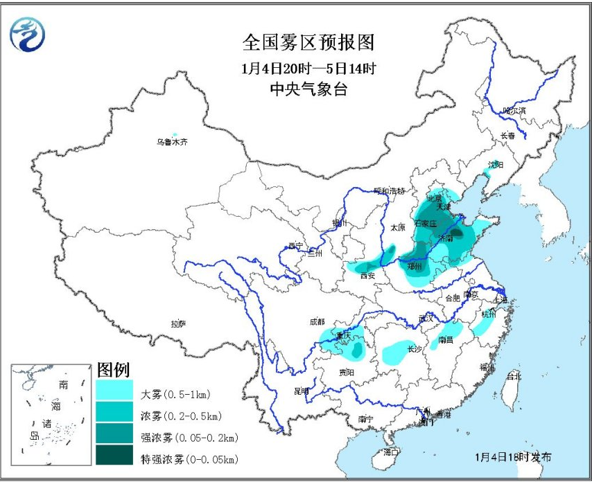 據(jù)中央氣象臺預(yù)計,4日夜間至5日上午,北京中南部、天津、河北中南部、河南中北部、山東大部、山西西南部、陜西關(guān)中等地有大霧,其中,北京南部、天津、河北中南部、河南北部、山東中西部等地有能見度低于500米的濃霧,部分地區(qū)能見度低于200米,局地不足50米。