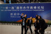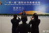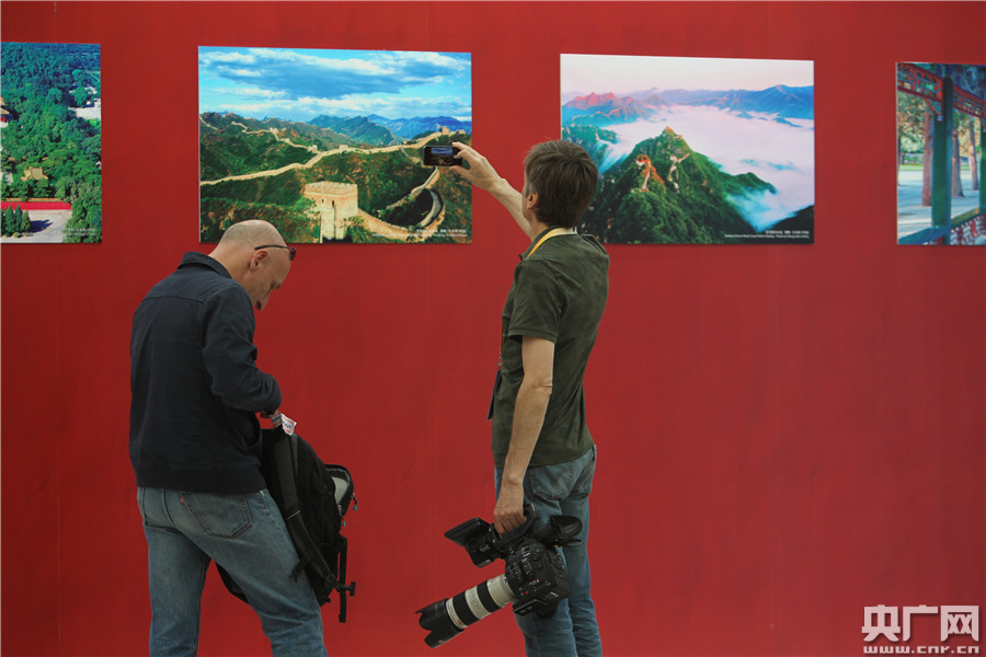 在“一帶一路”國際合作高峰論壇展廳內,兩名記者在拍照留念。(央廣網記者 王永康 攝) -