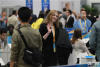 在“一帶一路”國際合作高峰論壇新聞中心內,兩名記者互留聯系方式。(央廣網記者 韓靖 攝) -