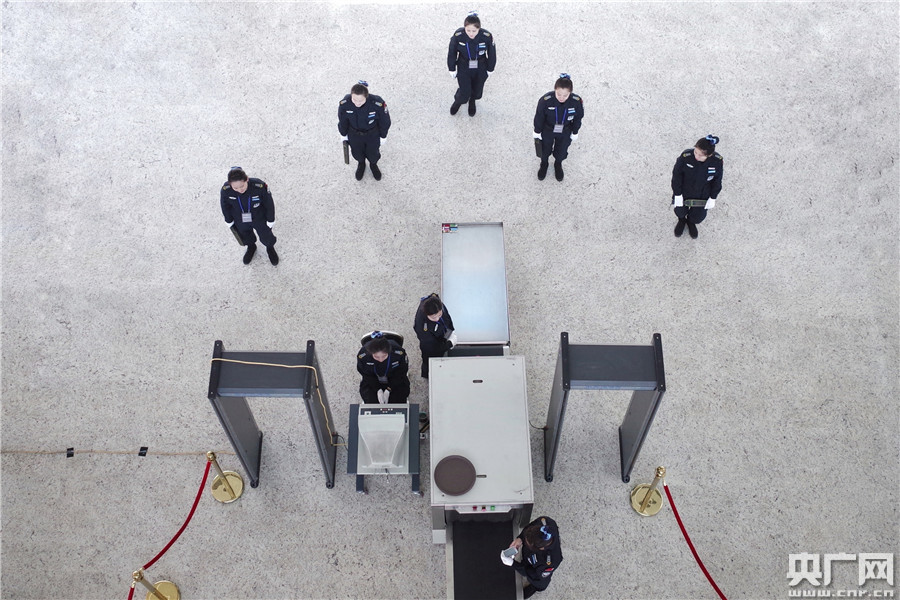 論壇臨近結束,安檢人員堅守在工作崗位上。(央廣網記者 王永康 攝) -