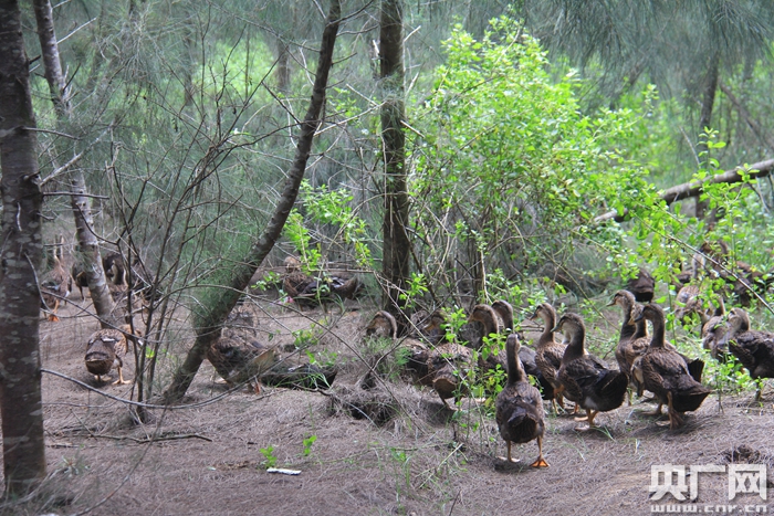 但長久以來,道灶村的海鴨一直以散養為主,沒有形成規模。去年9月,海南省機關事務管理局成為道灶村的定點幫扶單位,前期投入產業扶貧資金10萬元成立道灶養殖農民專業合作社,主要從事咸水鴨養殖等業務。去年底,該村的22戶貧困戶全部進入合作社,部分村民也相繼入股,做起了股東,實行“自管自養”的養殖模式。從去年年底,分批次投入了兩千余只鴨苗,還建設了鴨舍、鴨欄等基礎設施;縣畜牧局派出技術人員進行養殖過程中的疾病防疫,到今年1月,首批海鴨出籠,第一批股東分紅共計11400元,村民們轉到了第一桶金。