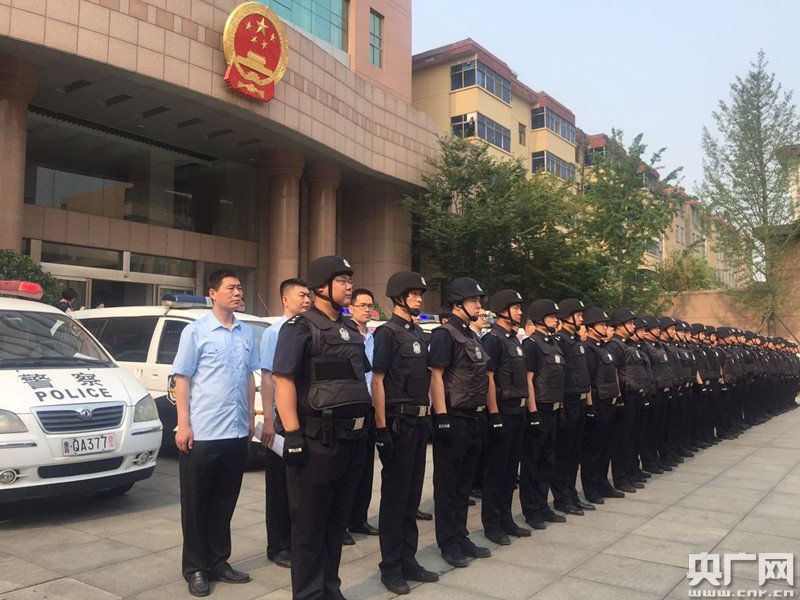 山東省臨沂市蘭山區人民法院,80余名執法干警集合完畢(孫冰潔攝)