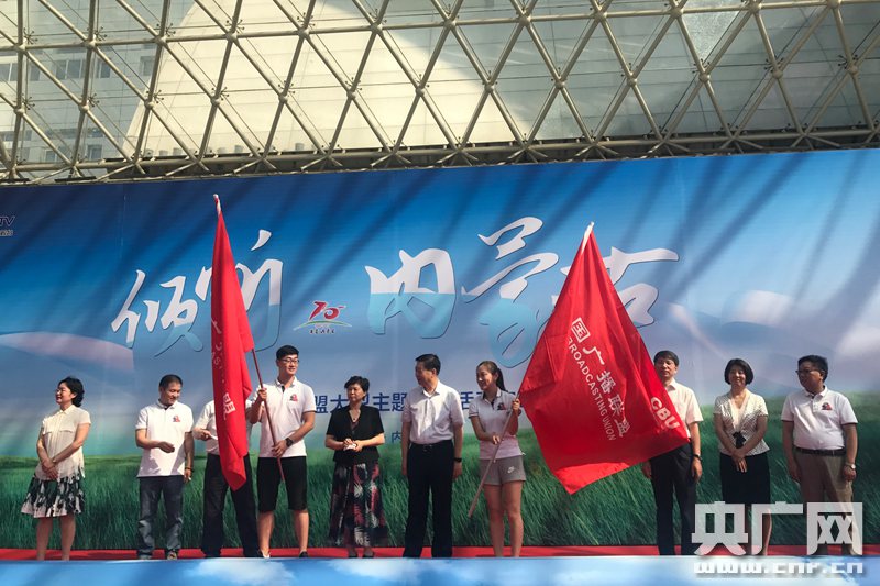 央廣網呼和浩特7月17日消息(記者吳海波)7月17日上午,中國廣播聯盟“傾聽內蒙古”大型采訪活動在內蒙古自治區呼和浩特市啟動。中央人民廣播電臺分黨組副書記、副臺長趙忠穎,內蒙古自治區黨委宣傳部常務副部長周純杰,內蒙古廣播電視臺黨委副書記、總編輯張興茂,中國廣播聯盟秘書長伍勁松,以及來自全國省級廣播電臺的50余名記者參加了啟動儀式。內蒙古廣播電視臺副總編輯朝魯巴特爾主持了啟動儀式,趙忠穎、周純杰、張興茂為活動致辭,最后,趙忠穎和周純杰為采訪團授旗。