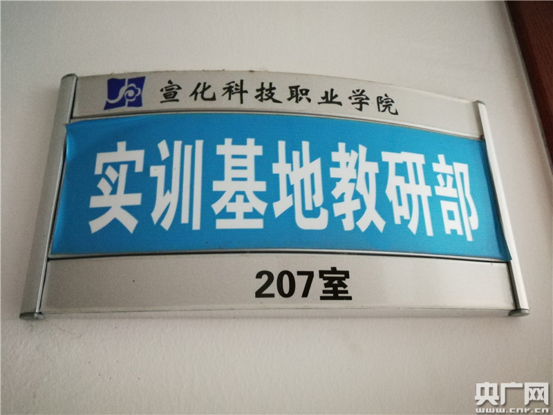 現代管理大學校園內一間辦公室門口掛有“宣化科技職業學院實訓基地教研部”字樣的門牌