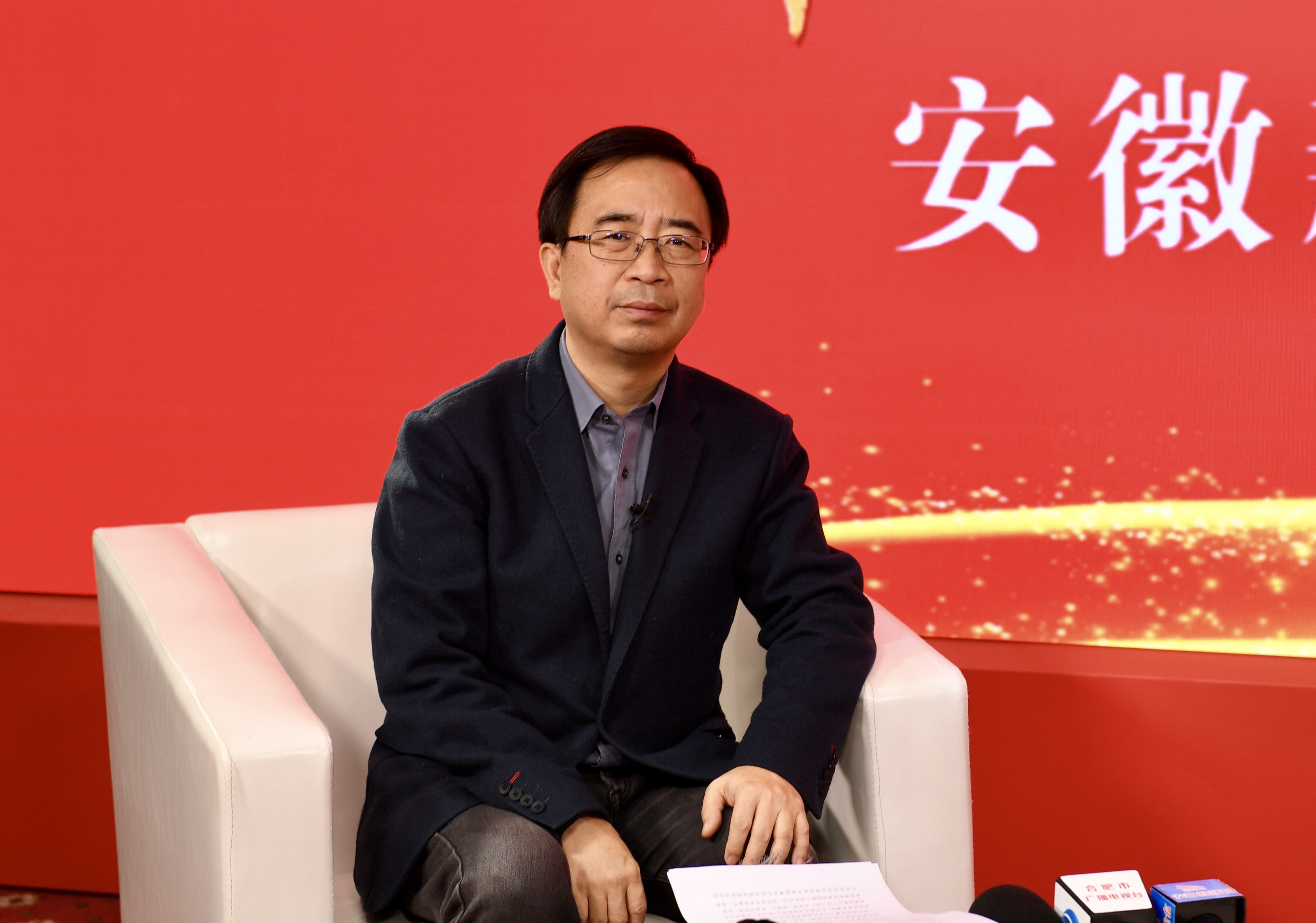 全國政協委員、中科院院士潘建偉接受記者采訪。(李京鵬攝)