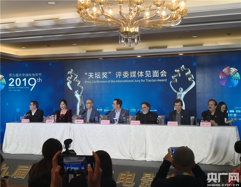 第九屆北京國際電影節主競賽單元“天壇獎”國際評委會會全體成員集體亮相。(央廣網記者 劉一荻 攝)