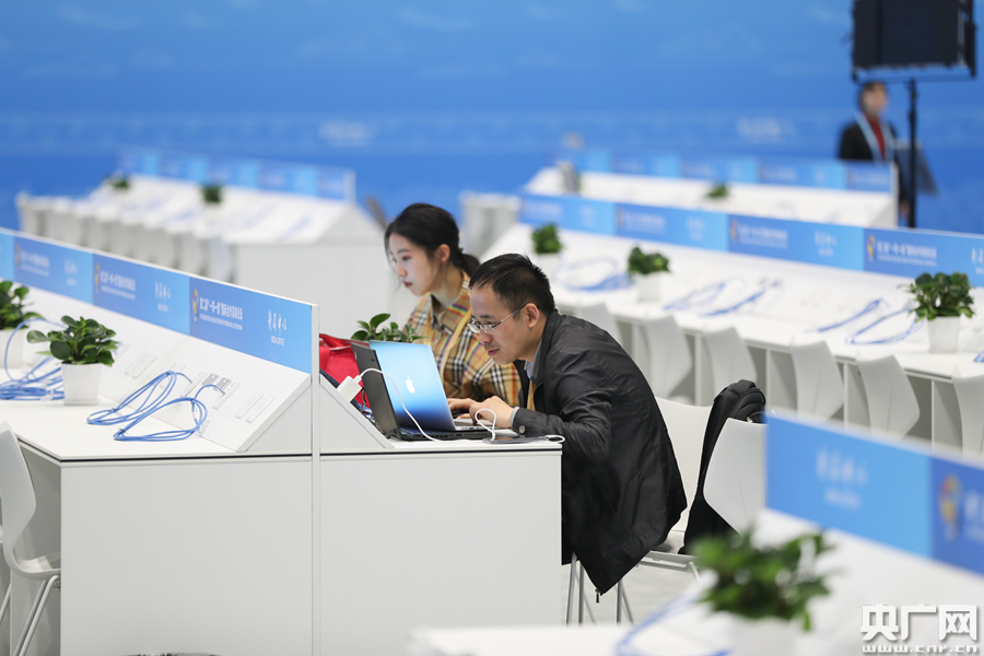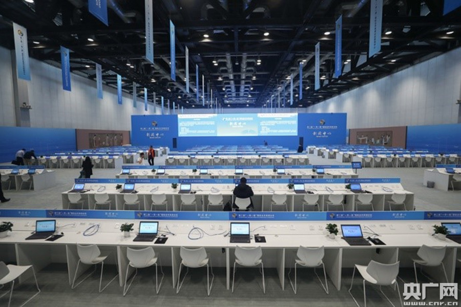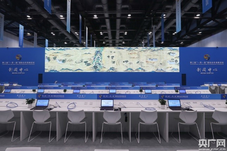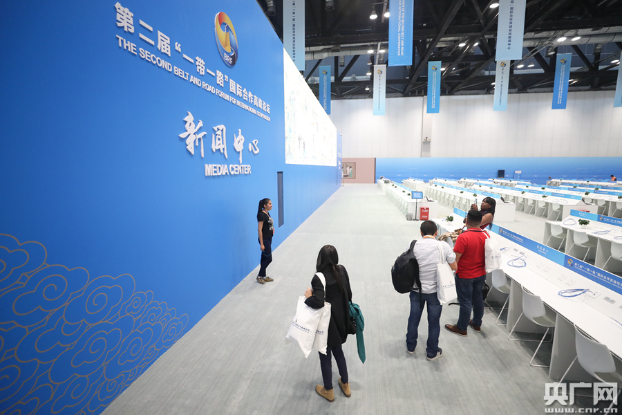 第二屆“一帶一路”國際合作高峰論壇新聞中心。(央廣網記者 韓靖 攝)
