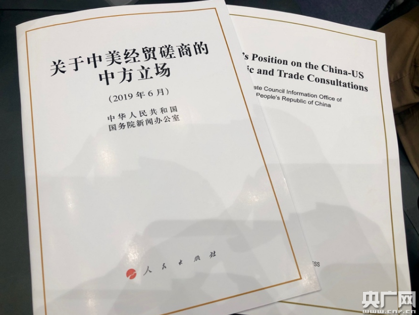 據了解,《關于中美經貿磋商的中方立場》白皮書以中、英、法、俄、德、西、阿、日等8個語種發表,由人民出版社、外文出版社分別出版,在全國新華書店發行。