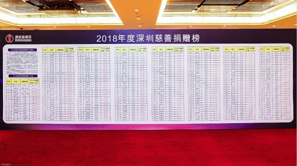 2018年度深圳慈善捐贈榜部分榜單(央廣網記者 黃倩 攝)