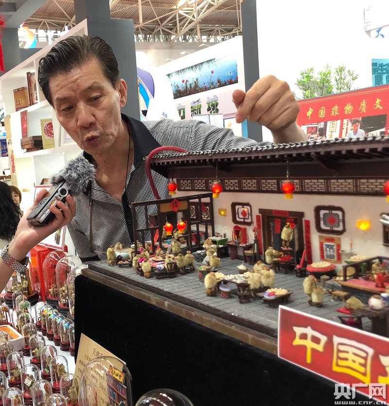 “毛猴”手藝人任先生作介紹(中央廣播電視總臺央廣記者 李展鴻 攝)