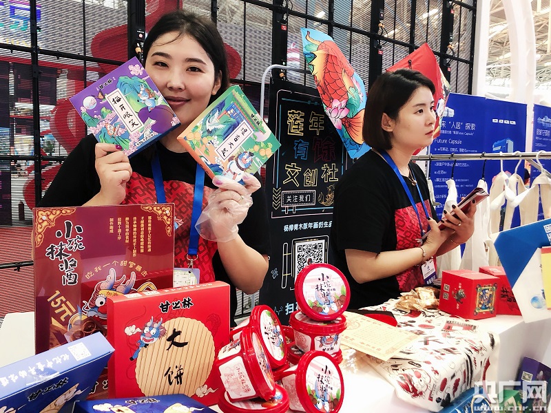 在天津展區(qū)的一個展位上,天津姑娘王沫華正忙得不亦樂乎。清爽香甜的杏子醬,抹在酥脆的薄餅上,讓前來品嘗的顧客領略天津的傳統(tǒng)美味,胖胖的麒麟化身為李白杜甫,站在“天津之眼”摩天輪前詩“杏”大發(fā),充滿中國元素的設計讓美食擁有了文化價值。