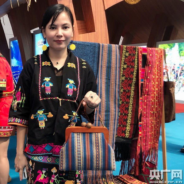 海南展區(qū)的黎繡織品(中央廣播電視總臺央廣記者 李展鴻 攝)