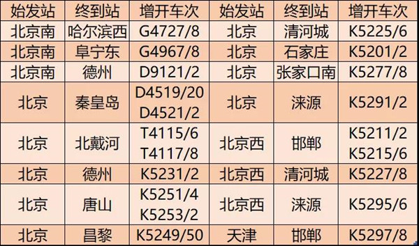 北京鐵路中秋假日運輸期間共增開24對列車,其中,高鐵動臥增開5對列車,并推出貼心服務,北京南站地下換乘層快速進站廳開啟時間提前至早7:00;北京站、北京西站設置“半小時取票窗口(機)”“一小時快速進站通道”減少“急客”排隊時間;北京西站部分列車實行東西兩側候車室雙向放行,縮短旅客走行距離。