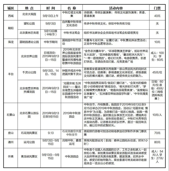 還有哪些公園可以泛舟賞月?中秋假期期間,北京市各區的風景區推出了花樣繁多的中秋活動。