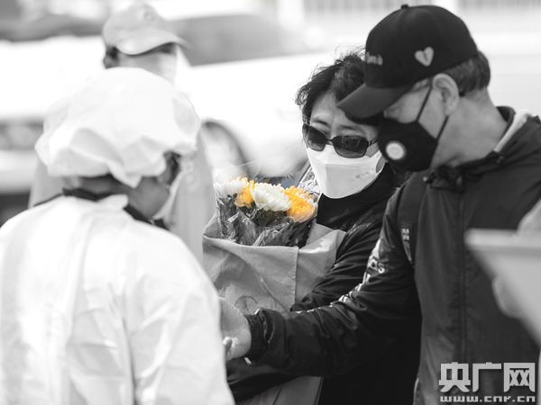 八寶山人民公墓為前來(lái)祭掃的市民提供免費(fèi)鮮花(央廣網(wǎng)記者 張佳琪 攝)
