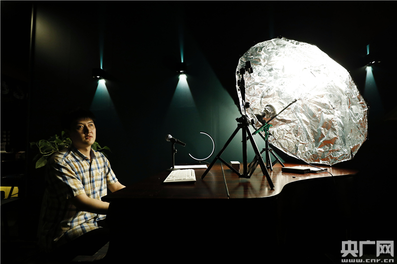 每晚9點,周昊雨在抖音上進行直播,為網友演奏鋼琴、講述餐廳故事(央廣網記者 張凱航 攝)