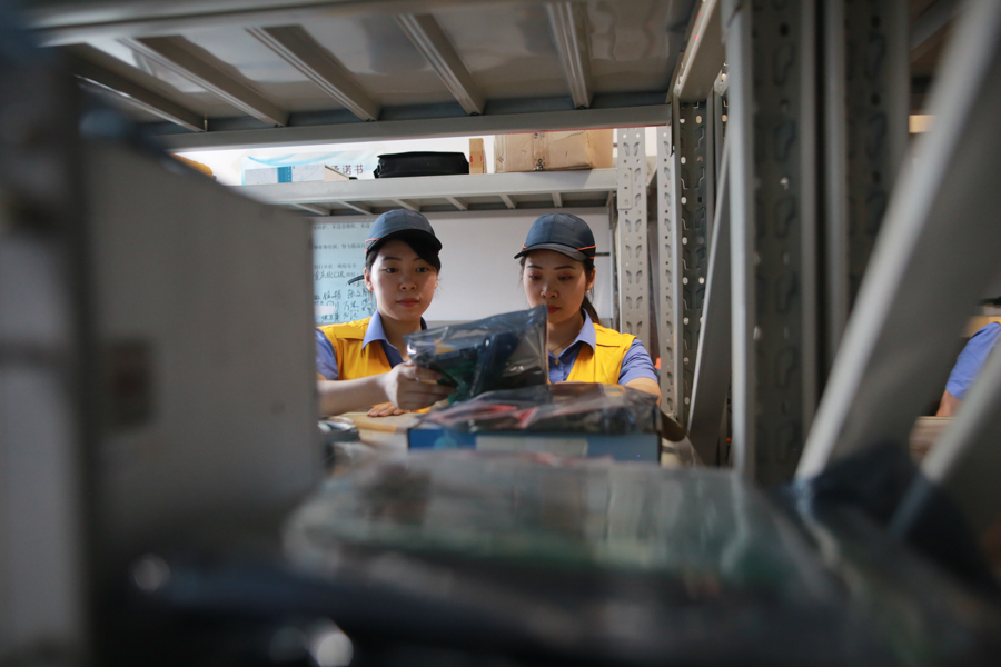 7月5日,萬杰、袁萌正在材料室檢查備品備件(央廣網發 蘇志剛攝)