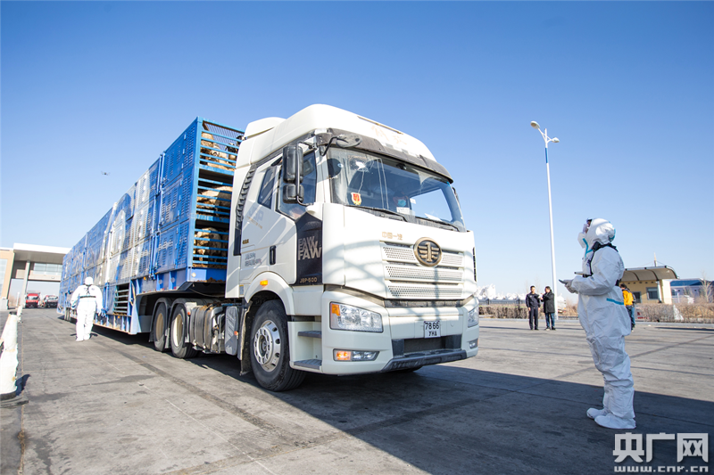 從10月22日開始,蒙古國捐贈的羊分批經(jīng)二連浩特口岸入境中國,11月12日上午,10輛集裝箱冷鏈車滿載首批加工完畢的1.2萬只羊,離開二連浩特,前往湖北武漢。