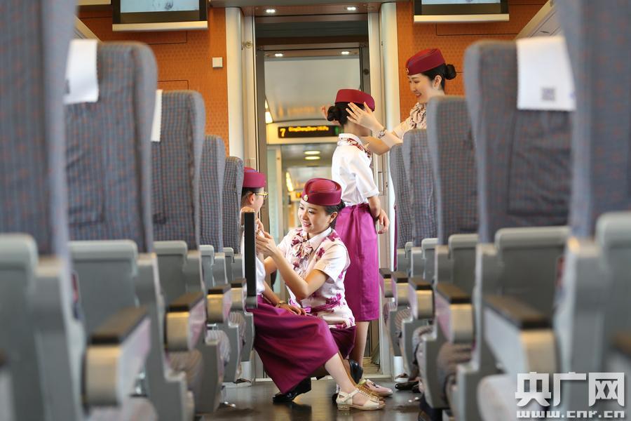 “迷你”列車長在“動妹”的指導下進行立崗 (央廣網發 龔萱 攝) -