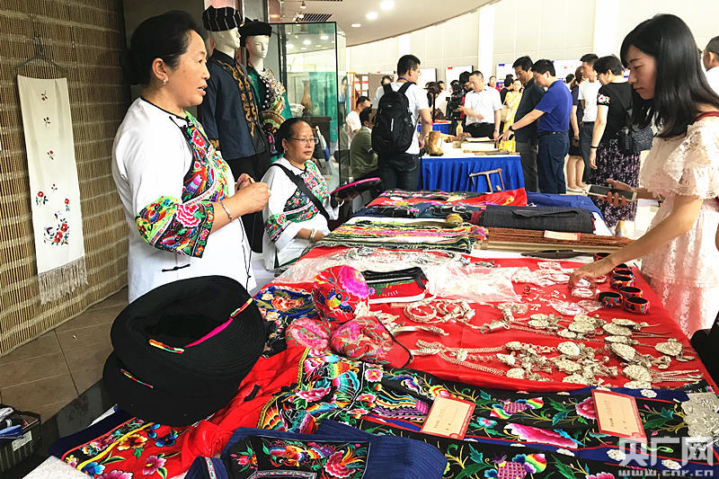 湖南省文化館內的湘西苗繡及其產品展示(央廣網記者 堯遙 攝)