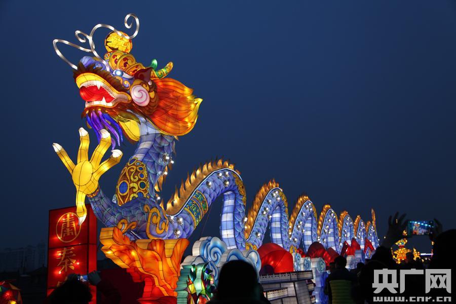 一條燈光組成的秦龍在古城墻熠熠生輝(央廣網記者 雷愷 攝) -
