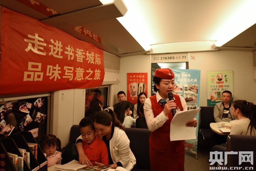 •    武漢客運段:列車書香分享行進之美   “我想把汪國真的《感謝》獻給我的妻子,感謝她為我孕育我們的下一代,感謝她為家庭的辛苦付出。讓我怎樣感謝你,當我走向你的時候……”來自河南的曹先生動情地朗誦到。他表示,非常開心能參與到書香城際讀書活動中。這次的出行經歷讓他印象深刻,他認為閱讀能夠真實地抒發情感,增進人與人之間的心靈溝通,是一件非常有意義的事情。活動現場還有幾名小旅客主動要求朗讀,3歲的葉若妍小朋友和8歲的袁浩誠小朋友分別朗讀了詩歌《黃鶴樓》和故事《桃園結義》,贏得了周圍旅客的陣陣掌聲。     旅客陳欣表示,自己從事文案工作,雖然平時非常忙,但一直很重視閱讀,她認為倡導閱讀能夠陶冶情操、緩解壓力,豐富人的內涵。