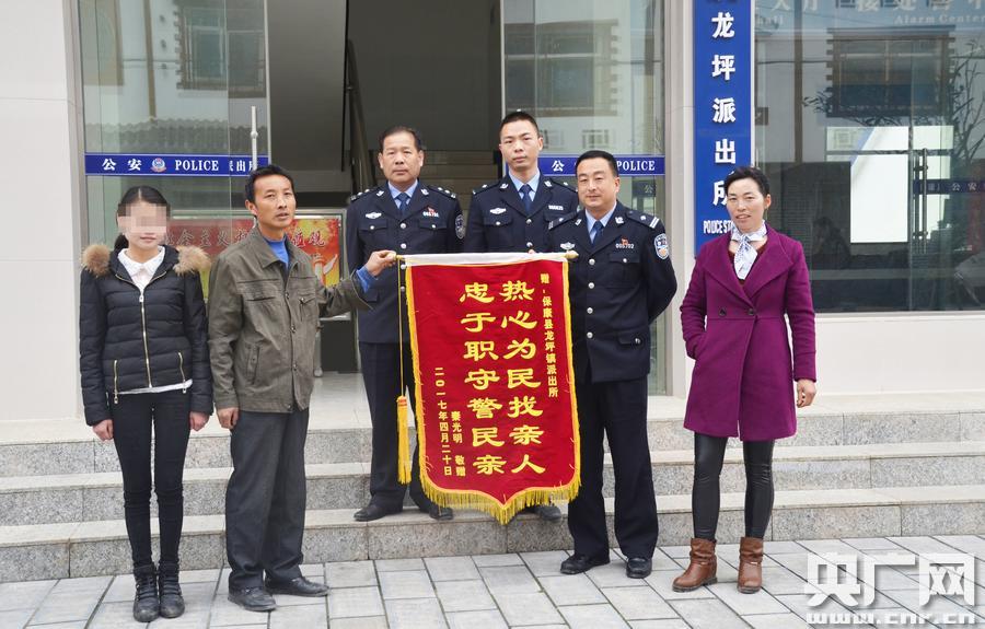 湖北保康民警解救拐騙失蹤9年少女 央廣網武漢4月25日消息(記者張毛清 通訊員歐陽智慧 丁炎)湖北保康少女曉麗(化名)父親早逝,母親離家,自己外出打工又遭拐騙。9年來,曉麗的奶奶天天以淚洗面,叔叔秦光明輾轉多地尋找無果。 今年3月30日,一位好心人透露,曉麗人在宜昌。因她被強制勞動而無法脫身,叔叔秦光明急忙來到保康縣公安局龍坪派出所報警求助。 民警連續奔忙半個月,4月18日,曉麗終被解救回家,與爺爺奶奶團圓。4月21日下午,曉麗的爺爺奶奶因行動不便,特地委托秦光明為龍坪派出所送來一面繡有“熱心為民找親人 忠于職守警民親”的錦旗(如圖),以表達他們對民警成功解救孫女的感激之情。 -