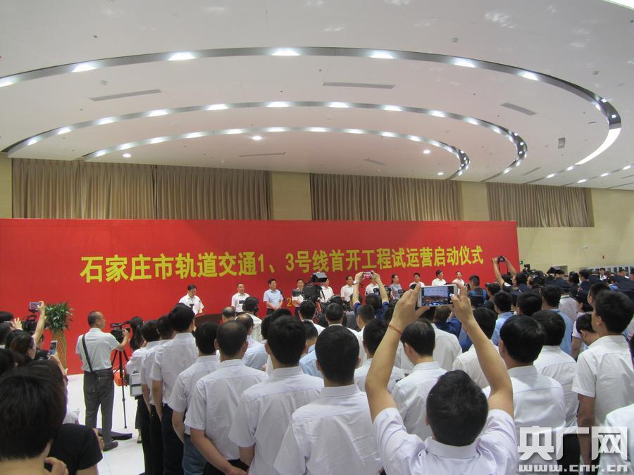 石家莊地鐵今天(6月26日)正式試運營(央廣網記者 明慧 攝) 央廣網石家莊6月26日消息(記者明慧)今天上午9:20分,隨著石家莊市委副書記,市長鄧沛然一聲宣布,石家莊地鐵正式載客試運營。今天啟動的是地鐵1號線一期和3號線一期首開段?偣こ倘L30.3公里。 經過完成建設施工、設備安裝調試、3個月空載試運行、乘客試乘體驗和試運營整體準備。試運行8項指標滿足國標要求,并已順利通過了13個專項驗收和試運營基本條件評審等工作。 石家莊市是全國第29個開通的城市, 做為河北省首個開通地鐵的城市,承載著河北人民的期盼,標志河北“地鐵時代”的到來,這為緩解城市交通壓力,提升城市品位,拉動經濟增長,有著深遠影響。 石家莊市經國家批準的軌道交通線網方案為6條線組成的“大放射、小方格”布局,其中,骨干線3條,輔助線3條,目前在建開通的為1號線一期和3號線一期中間段30公里,主要解決石家莊主城區東西向及新火車站交通需求。 石家莊地鐵列車采用的是被譽為地鐵家族“巨無霸”的A型地鐵列車,除了運送乘客多、乘坐舒適之外,也是全球防火等級最高、國內最靜音的地鐵。同時,石家莊地鐵在現代時尚、簡約實用的設計風格中充分融入了紅色歷史、文化元素,無論是車票、站臺還是車廂內,乘客都可以通過圖文、藝術墻、雕塑等形式,感受石家莊的歷史文化底蘊和發展的活力。