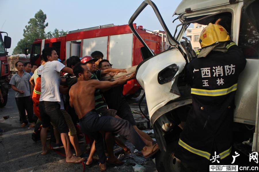 廣西兩車相撞一人被困 群眾營救傳遞正能量