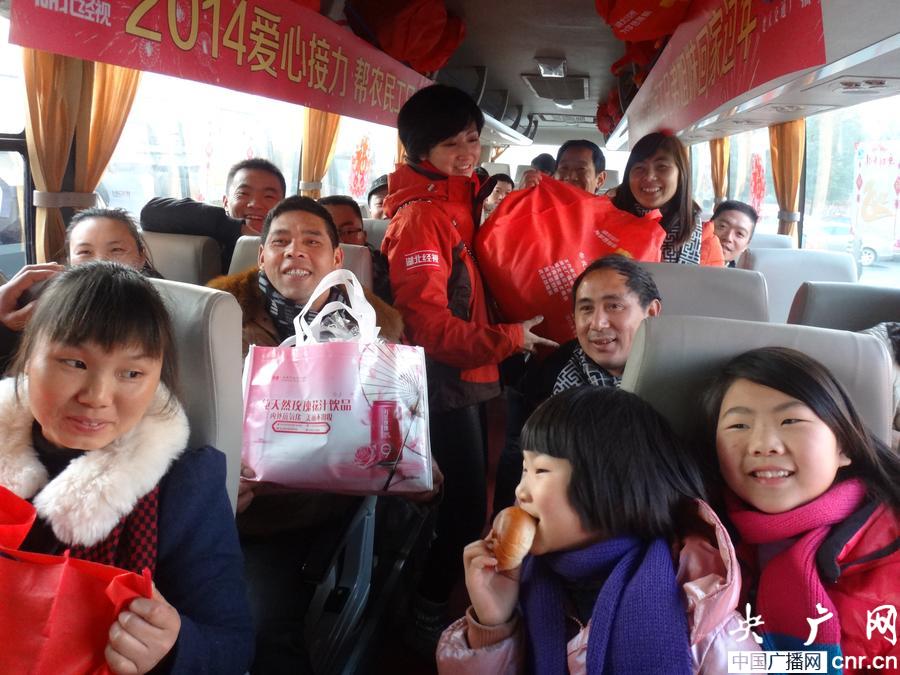“送農民工兄弟姐妹回家過年”活動是由湖北廣播電視臺聯合湖北省總工會、湖北省婦聯等多部門開展,已經連續舉辦第三年。湖北經視總監鄧海說,今年的活動時間歷時一個月,時間更長;通過專列、大巴、愛心車隊完成,動員社會各界志愿者參與,形式更多。今年將有望幫助30萬農民工返鄉過年。