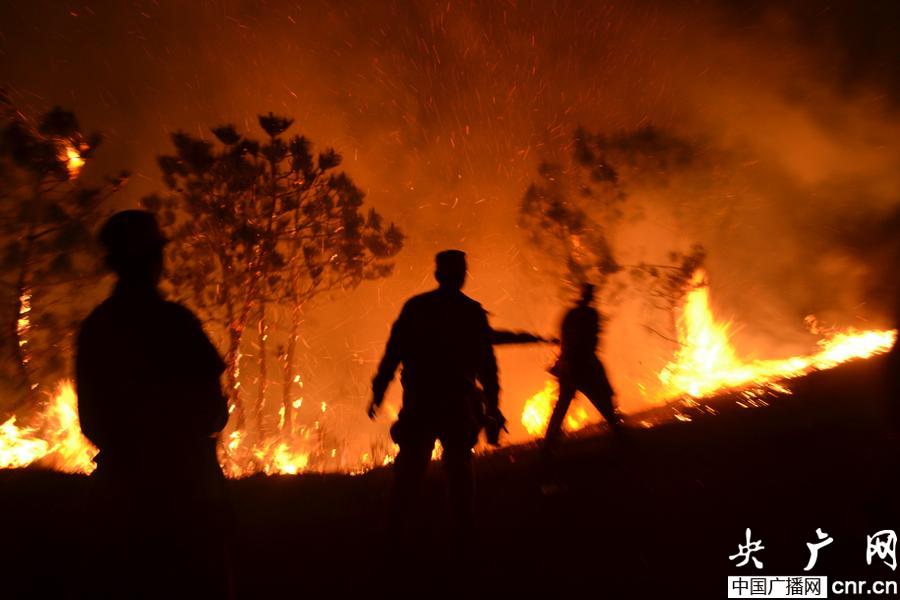 撲火隊(duì)員在森林火災(zāi)現(xiàn)場(chǎng)(央廣網(wǎng)發(fā) 龔龑 攝)