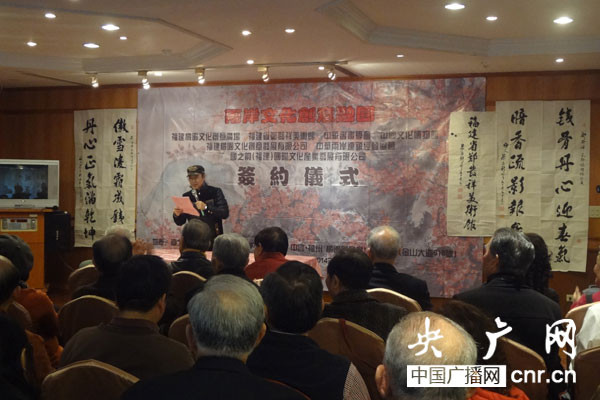 央廣網北京3月25日消息(記者 于聞)以“兩岸文化,創意融圓”為主題的兩岸文化聯盟,于2014年3月21日至25日分別在臺北、新竹、高雄、臺南等地舉行了聯合簽約儀式。