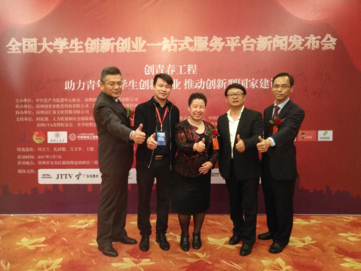 央廣網深圳1月08日消息(記者 于揚)2017年1月7日,由中國生產力促進中心協會、深圳創青春教育科技有限公司主辦,深圳市靈犀文化傳媒科技有限公司承辦、深圳市匯客文化傳媒有限公司協辦的創青春工程新聞發布會在深圳寶安區勝利召開。新聞發布會得到了科技部、人力資源和社會保障部、教育部、共青團中央等部委,以及西安交通大學高新技術創業服務中心、中國繼續工程教育協會、小小世界集團、創創投資等十幾家協會、企業、創投機構和教育機構的大力支持。中國生產力促進中心協會處長王敬先生、小小世界集團董事長、霸王集團總裁萬玉華女士、創青春工程高級顧問、西安交通大學高新技術創業服務中心主任孔祥騮教授,以及深圳創青春教育科技有限公司創始人馬安華、秦伯庸、徐久升先生等十幾位領導嘉賓出席新聞發布會。