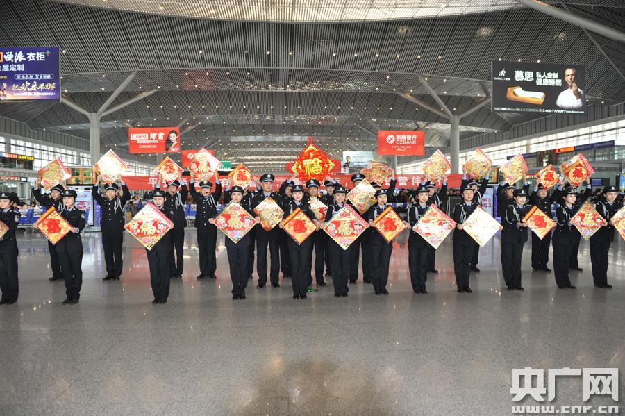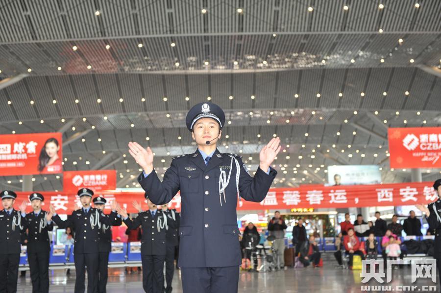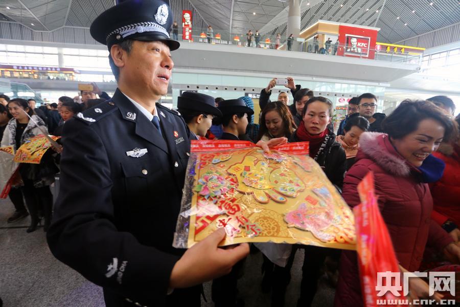 西安鐵路公安處處長(zhǎng)于廣燕為群眾送“福”(吳活潑攝) 央廣網(wǎng)西安1月12日消息(記者雷愷 通訊員吳活潑 胡珂)春運(yùn)大幕即將將拉開,今天(12日),西安鐵路公安處在西安北站全面啟動(dòng)春運(yùn)安保工作。 在西安北站二樓候車廳,一場(chǎng)精彩激昂的架子鼓秀吸引了旅客的駐足。一群身著警服的民警走進(jìn)旅客中間,以一曲《回家的路》拉開了西安鐵警春運(yùn)愛民服務(wù)活動(dòng)的序幕。隨后,特警、交警、乘警、治安、安檢等警種民警依次上臺(tái),通過情景模擬演練、面對(duì)面宣講、有獎(jiǎng)問答等形式,向過往旅客宣傳春運(yùn)出行安全常識(shí)。 西安鐵路公安處處長(zhǎng)于廣燕介紹,今年春運(yùn),西安鐵警緊盯高鐵旅客出行安全這一重點(diǎn),全處1800名民警和2600多名輔警全員在崗,全面提升轄區(qū)治安管控工作等級(jí),重拳打擊以倒賣車票、盜竊財(cái)物、欺詐旅客等各類慣性違法犯罪活動(dòng)為主要內(nèi)容的“獵鷹”“天網(wǎng)”“利劍”三大戰(zhàn)役,努力為廣大旅客平安出行創(chuàng)建良好的“站、車、線”治安環(huán)境。 同時(shí),警方將圍繞“平安春運(yùn)、有序春運(yùn)、溫馨春運(yùn)”這一主題,部署全處各單位、各崗位立足本職,開展主動(dòng)為旅客服務(wù)活動(dòng),方便特殊群體及孕婦、老年人和殘疾旅客出行,讓旅客平安返家。 -