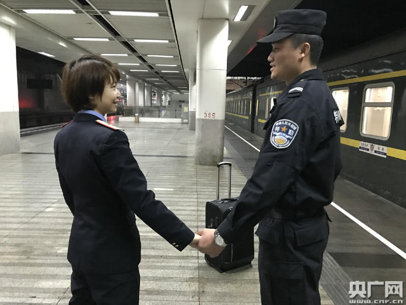 陳敏是廣鐵集團廣九客運段深烏車隊的一名列車廣播員,她愛人鄧軍湘是惠州鐵路公安處東莞東站派出所的一名執(zhí)勤特警,倆人因鐵路結(jié)緣,相識相識相愛,今年春運前不久才領(lǐng)完證,喜酒都來不及擺,蜜月也來不及度,就馬上投入繁忙的春運工作。