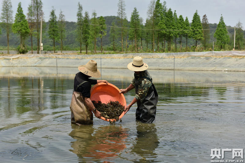 央廣網(wǎng)南昌4月26日消息(記者謝元森 通訊員李紅梅 萬(wàn)朝暉)4月26日,在江西省進(jìn)賢縣羅溪蟹苗繁育基地,養(yǎng)殖人員正在把暫養(yǎng)池里的蟹苗捕撈投放到精養(yǎng)池進(jìn)行分塘養(yǎng)殖,規(guī)格為每畝1000尾,開(kāi)始池塘養(yǎng)蟹試驗(yàn)。這是進(jìn)賢縣首次推行池塘生態(tài)養(yǎng)蟹試點(diǎn)。