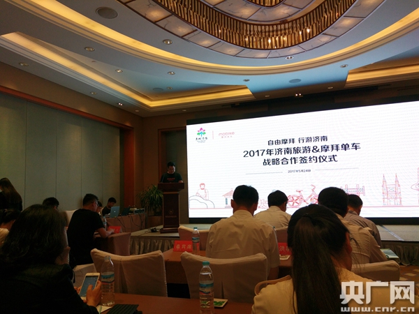 央廣網濟南5月24日消息(記者林彥銀 通訊員蘭路蕾)5月24日,濟南市旅游發展委員會與摩拜單車戰略合作協議簽約儀式在濟南喜來登酒店舉行。會上,濟南市旅游發展委員會和摩拜單車共同開啟“自由摩拜 行游濟南”整合營銷系列活動,主要包括面向五大濟南旅游客源地城市摩拜單車用戶開展的“摩拜達人騎游濟南”活動和面向全國摩拜單車用戶開展的“游濟南地標 贏旅游大獎”活動。活動同期將打造摩拜主題郵局、摩拜主題酒店客房,并發布“濟南五大騎行線路”。
