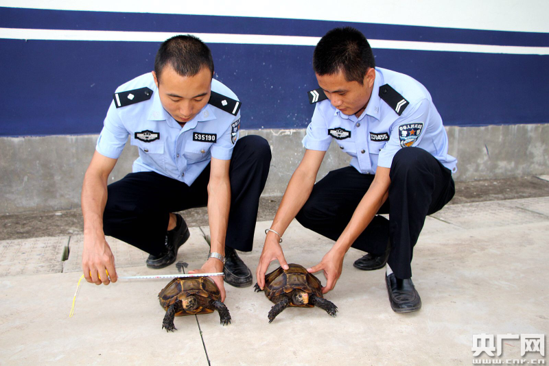 5月24日,經云南省西雙版納州林業司法鑒定中心鑒定,巖某購買的兩只山烏龜的確是國家二級重點保護野生動物凹甲陸龜。巖某的父親因涉嫌非法收購珍貴、瀕危野生動物罪被西雙版納州森林公安局直屬分局取保候審。目前,案件正在進一步辦理中。森林公安民警表示,兩只凹甲陸龜經幾天的觀察、檢查后,未發現傷殘,健康狀況良好,待找到合適放生地點后將其放歸自然。
