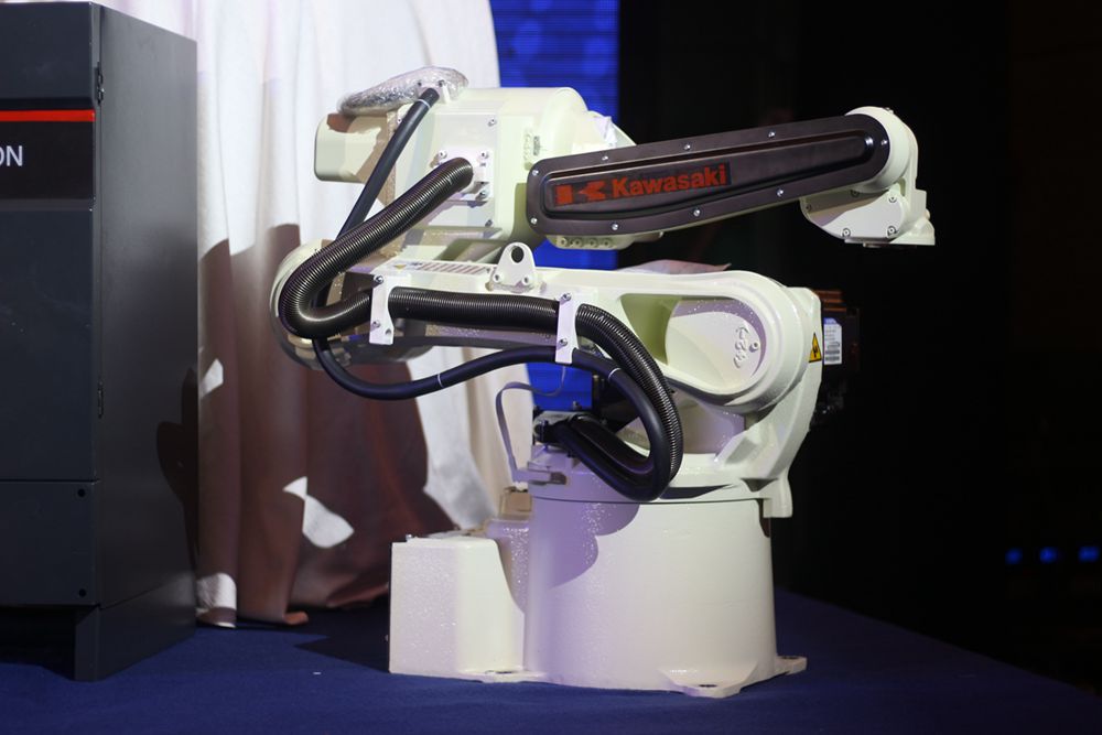 據智昌集團首席科學家、執行總裁遲永琳博士介紹,此次亮相的“銳智控制器”與日本川崎工業機械臂相結合,在重復定位精度、路徑精度、工作節拍等方面均處于國際先進水平;控制器還擁有先進的人機交互、專業的控制柜設計等多項優越性能,支持川崎的多款機械臂。